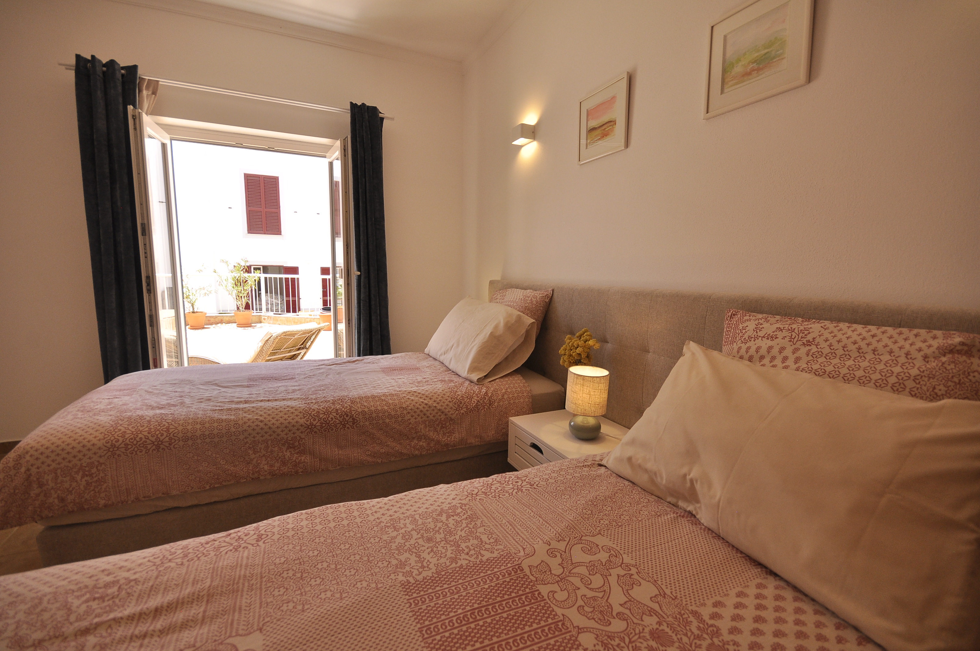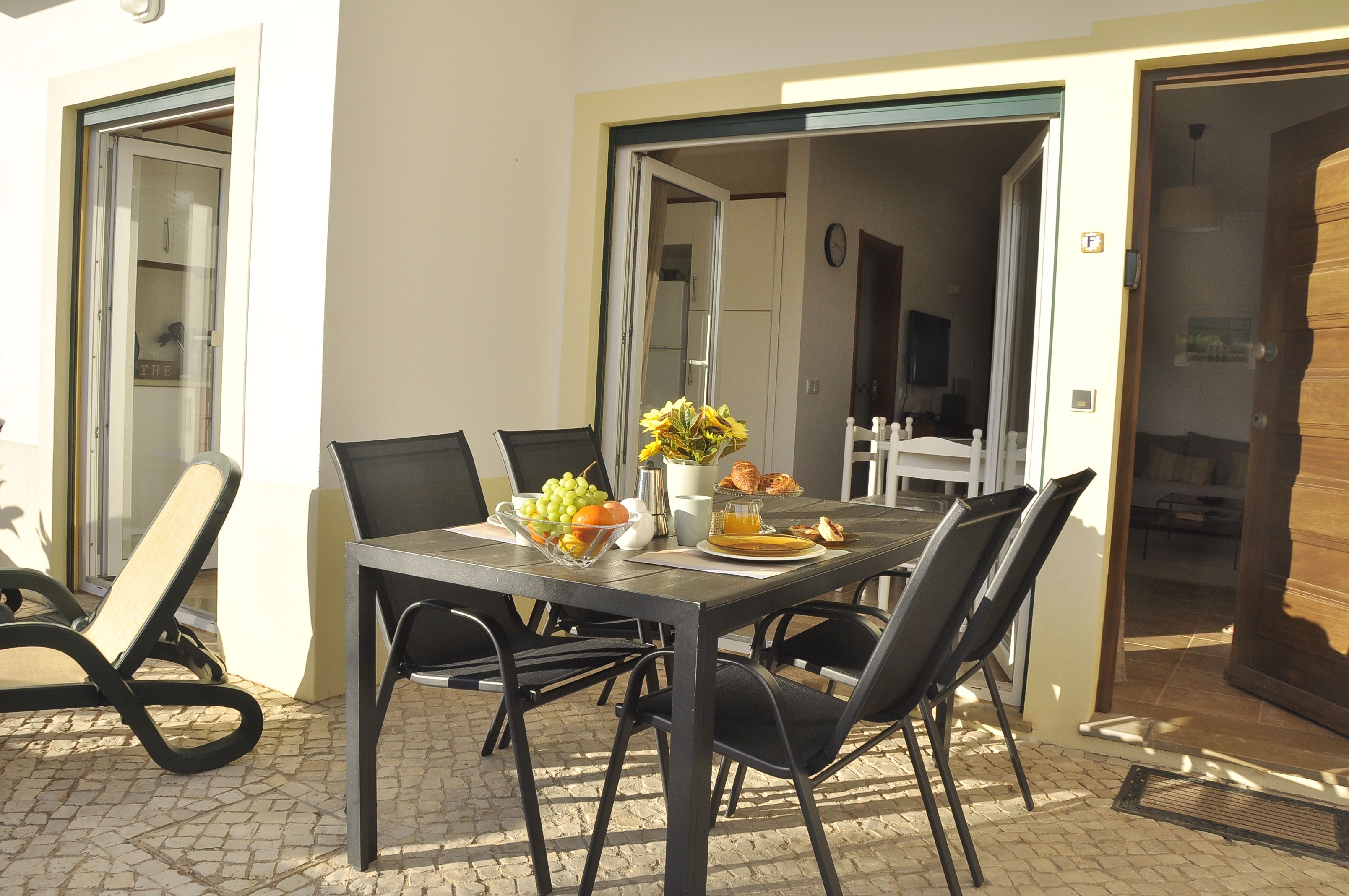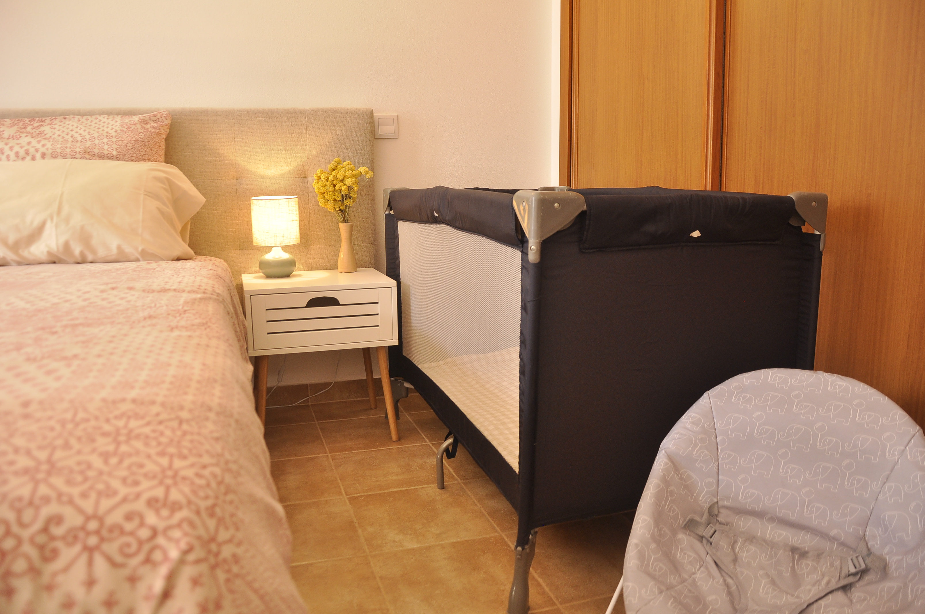 Breakfast enjoying the morning sunHeated poolOpen plan dining and living room View from the front terracePool/beach towels providedDining tableFront TerraceDouble bedroom 160cm bedLiving room with WIFI and TVLiving room with direct access to front terraceRear terraceTwin bedroomLiving roomDining areaKitchen with direct access to front terraceFully equipped kitchenFront terraceSofaDouble bedroom with direct access to rear terraceTwin bedroomTwin bedroom with access to rear terraceBaby cot and baby bouncer chairBathroomBathroomSeparate WC and wash basinBeach trolleyBeach trolley at your disposalAccess gate to covered parking Covered parking spaceEntrance to the condominium