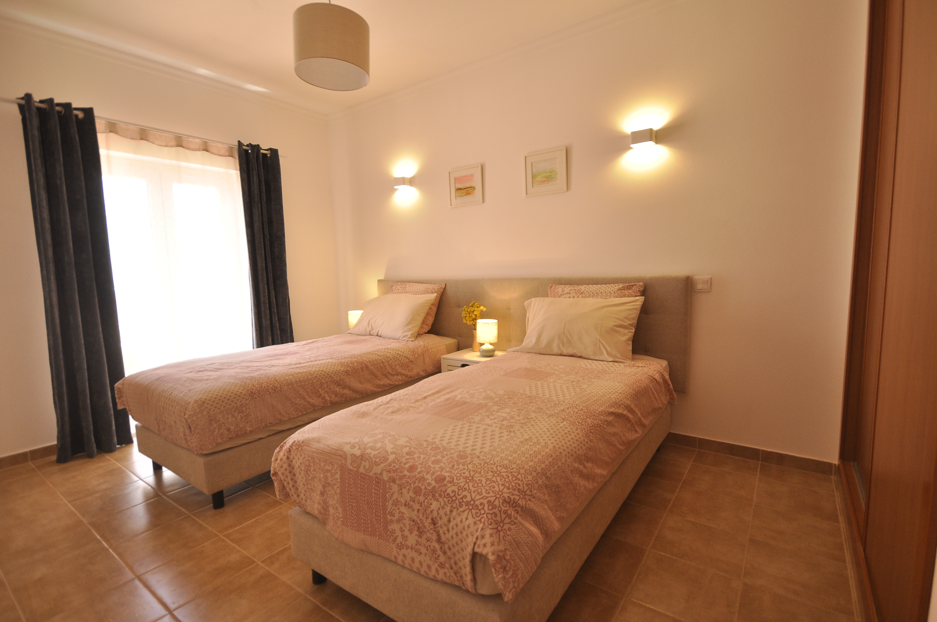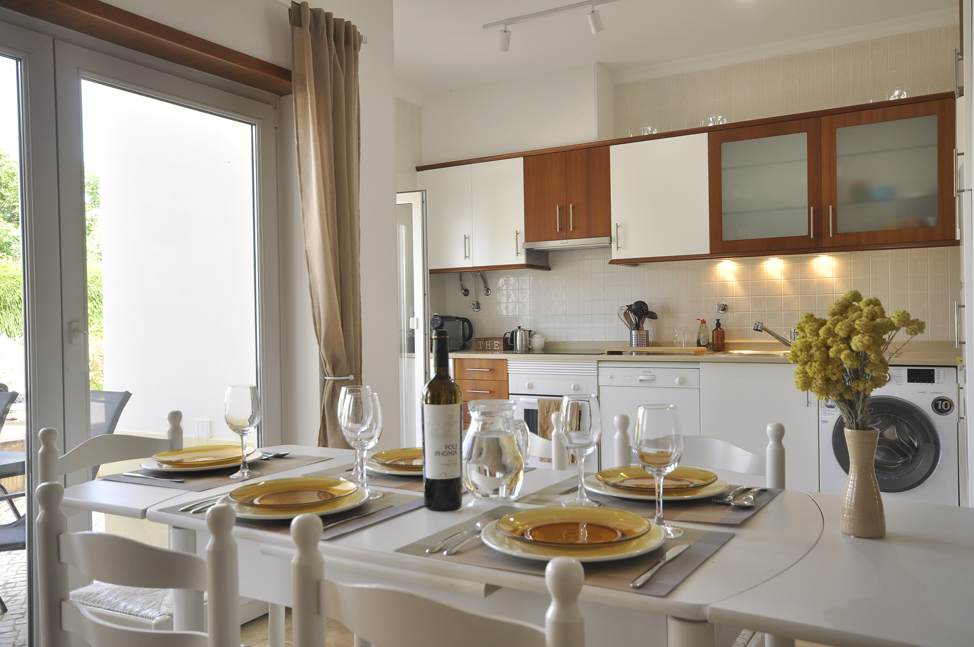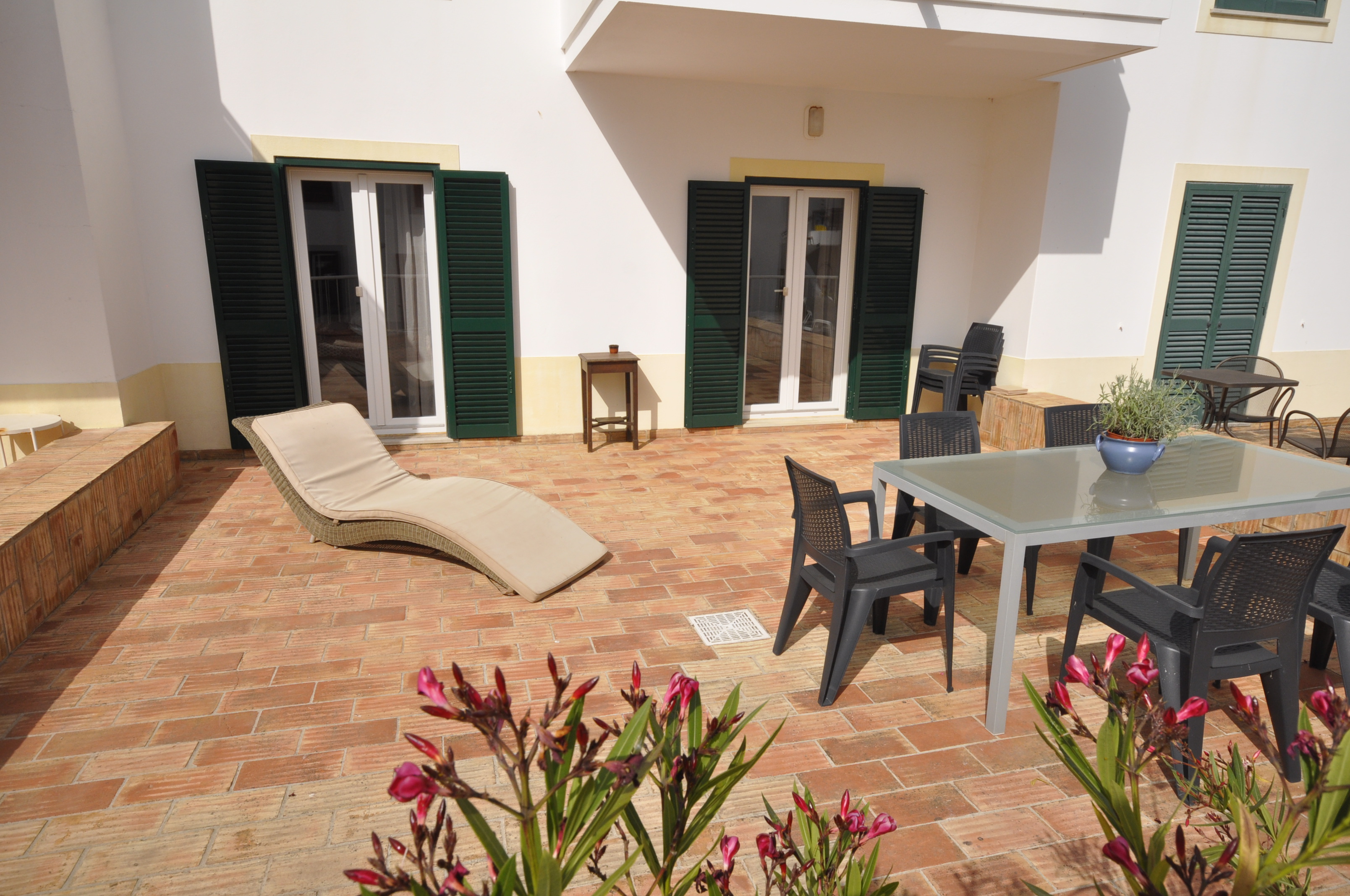 Breakfast enjoying the morning sunHeated poolOpen plan dining and living room View from the front terracePool/beach towels providedDining tableFront TerraceDouble bedroom 160cm bedLiving room with WIFI and TVLiving room with direct access to front terraceRear terraceTwin bedroomLiving roomDining areaKitchen with direct access to front terraceFully equipped kitchenFront terraceSofaDouble bedroom with direct access to rear terraceTwin bedroomTwin bedroom with access to rear terraceBaby cot and baby bouncer chairBathroomBathroomSeparate WC and wash basinBeach trolleyBeach trolley at your disposalAccess gate to covered parking Covered parking spaceEntrance to the condominium